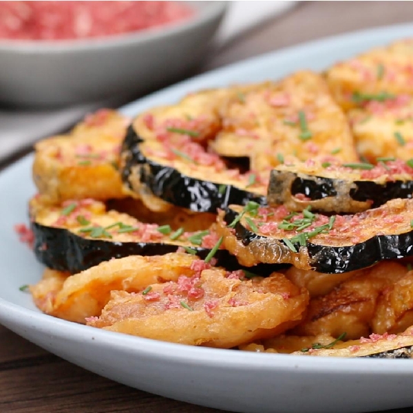 Beer-battered squash with ketchup chip salt and spiced maple syrup