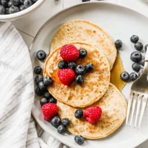 This easy cottage cheese pancakes recipe is made in a blender using whole foods, and results in healthier pancakes that still taste amazing! best of all, they contain 5 grams of protein at just 100 calories each.