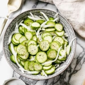 This easy cucumber onion salad recipe is a delicious combination of cool cucumber, sweet onion, and tangy marinade that can be made in advance and is perfect for any bbq or summer party