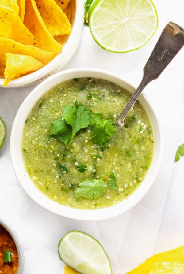 Never buy store-bought salsa again and make this easy salsa verde. this salsa verde is made with 6 ingredients and is refreshing and so flavorful.