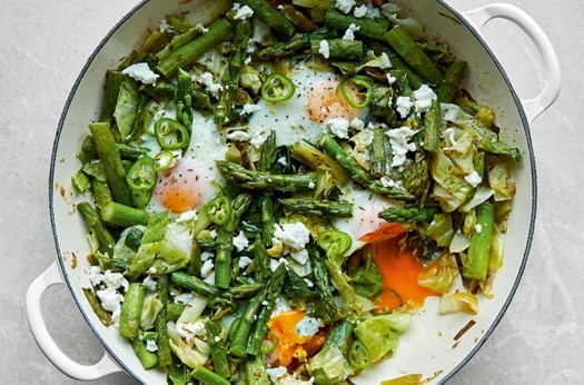 A delicious and speedy dish bursting with fresh asparagus, zingy chilli and salty feta.