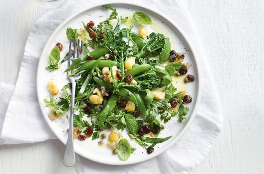 Herb and butter bean salad with caper sultana dressing