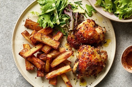 Honey mustard chicken thighs & chips