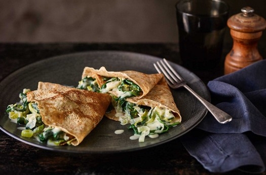 Leek, spinach and gruyère crêpes