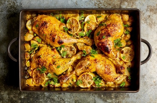 Marinating chicken in a middle eastern - inspired mixture of lemon, saffron, garlic and yogurt tenderises the meat and infuses the dish with elegantly fragrant flavours.