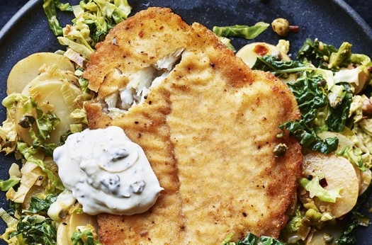 Creamy cabbage, leeks and new potatoes make classic partners for protein-packed, responsibly sourced fish. the zesty crème fraîche takes things to another level.