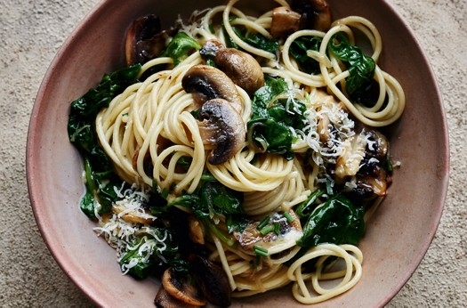 Mushroom, spinach & miso butter spaghetti