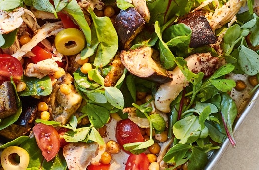 Roasted chicken, aubergine & chickpea salad