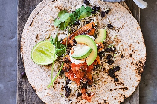 Warm the wraps according to the pack instructions. Serve each wrap filled and rolled with the rice, squash, a drizzle of coconut yoghurt and any extras such as avocado, salsa or chilli sauce.