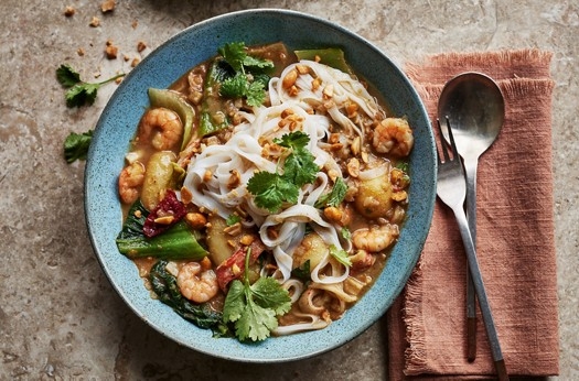 Spicy seafood massaman noodle bowl