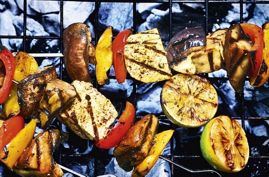 Divide the dressed vegetables and tofu between 8 skewers, ensuring that you get a well-balanced mixture of everything on each skewer. Cook for 6-8 minutes, turning every 2 minutes until lightly charred and tender. Add the lime halves to the grill for 1-2 minutes, until charred.