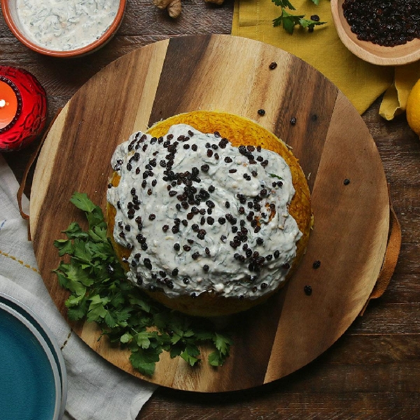 Looking for a more eye-catching way to serve chicken and rice? try tachin joojeh–a persian dish with a crispy brown layer of saffron rice that gives way to fragrant sautéed chicken and onions. when you invert this casserole onto a platter, it looks like a savory upside down cake! serve it with a bright yogurt sauce and barberries for a pop of sweetness.