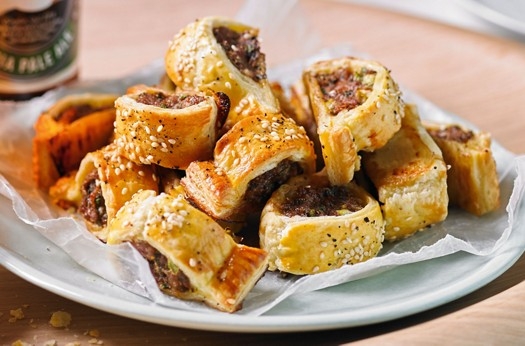 Delicate puff pastry and pork sausage rolls, with an added kick of fish sauce and red thai curry paste.